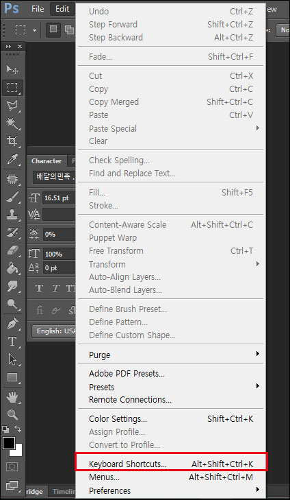 포토샵 단축키 설정하기(직접설정)