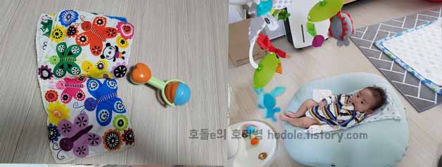 ※이 시기의 아기는 질식의 위험이 있기 때문에 반드시 보호자의 관찰 속에서 엎드려 놓아야 합니다. 또한 아기가 힘들어한다면 바로 놀이를 멈춰야 합니다.