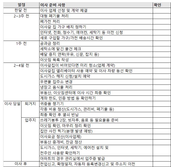 하여 보다 스마트한 이사를 위한~ 체크리스트를 준비했습니다.