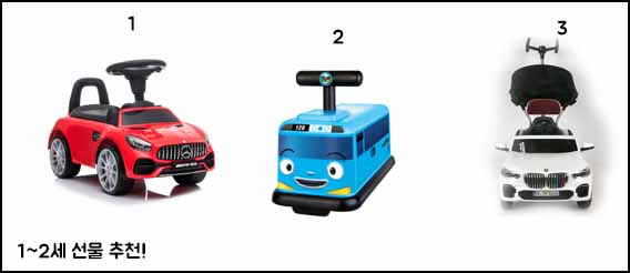 * 1~2세는 사실 남아 여아 구분이 없이 편하게 선물하셔도 될 것 같습니다.