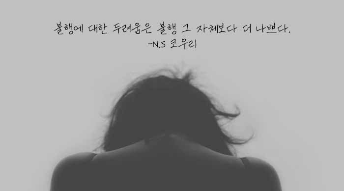 불행에 대한 두려움은 불행 그 자체보다 더 나쁘다. -N. S 코우리