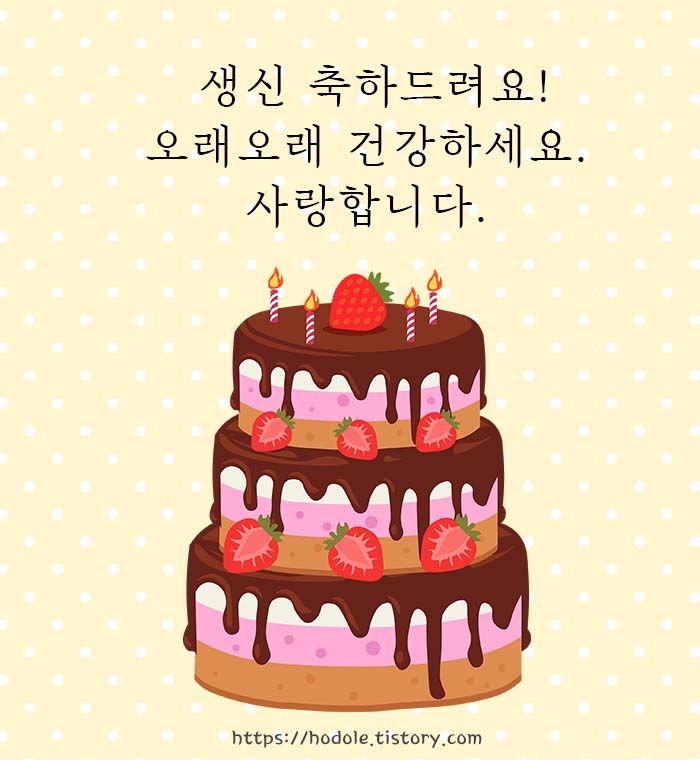 1. 엄마(아빠) 생신 진심으로 축하드려요. 앞으로도 건강하게 꽃길만 걸으세요. 사랑합니다.