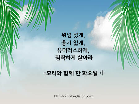- "위엄 있게, 용기 있게, 유머러스하게, 침착하게 살아라."-'모리와 함께 한 화요일' 中