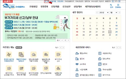 1. 포털에서 홈텍스를 검색하여 접속합니다.