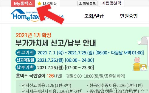 3. 메인화면 상단의 <My홈텍스>를 클릭합니다.