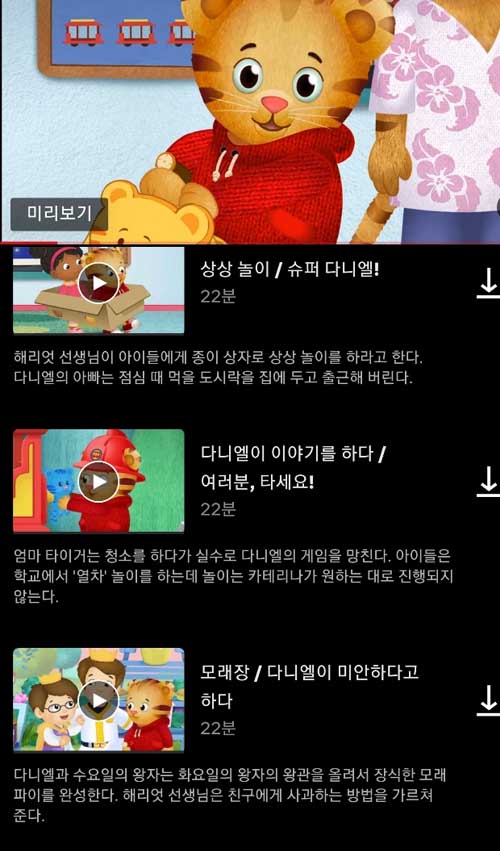 저희 아이는 30개월 전까지는 TV,스마트폰 등 미디어 노출을 전혀 하지 않았어요. (엄마는 각종 장르의 미드를 섭렵한.. 미디어 중독자이지만) 그러다 삼복더위에 에어컨이 고장 나고.. 지친 저는 '그나마 좀 덜 자극적이고''화면 전환이 적고''교육적인'프로그램을 찾아보았죠. 그러다 30개월 아기 첫 TV 프로그램으로 결정한 게 넷플릭스에서 서비스 중인 '다니엘 타이거'입니다.