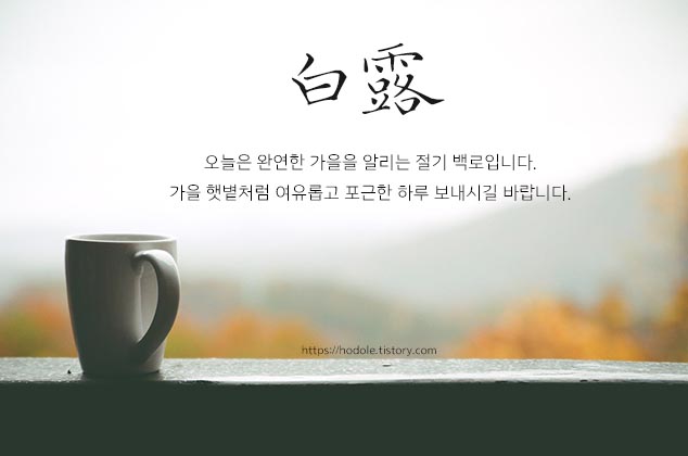 태풍으로 인해 가을장마가 한창이네요. 비 피해는 없으셨는지요. 오늘은 24절기 중 열다섯 번째 절기 백로 인사말 카톡 문구와 이미지를 준비했습니다. 필요하신 분께 도움이 된다면 좋겠습니다.