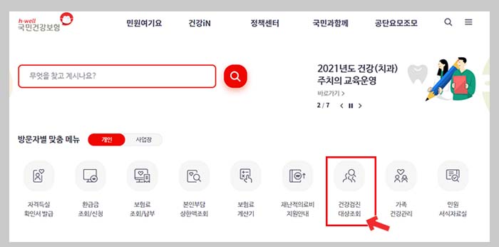 공단 홈페이지에서 자신이 건강검진 대상자인지 아주 간단하게 확인할 수 있습니다.