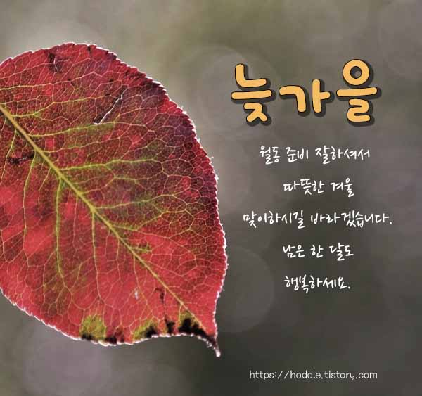 - 사색의 계절, 떠나는 가을이 아쉽기만 합니다. 겨울로 가는 길목에서 지는 가을 잘 마무리하고 다가올 겨울 차분히 준비해봅시다.