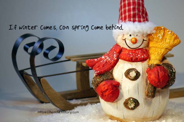 - If winter comes, can spring come behind.(겨울이 오면 봄도 멀지 않으리) 한겨울의 쌀쌀함보다 주머니 속 따뜻한 손난로의 행복 기억하는 일요일 되세요.
