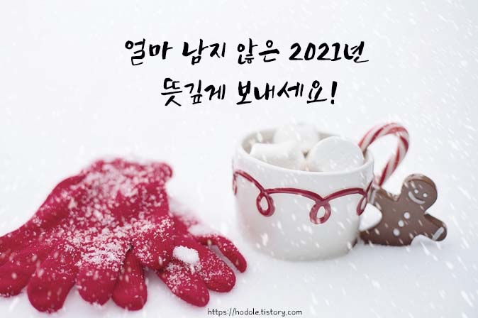 - 다사다난했던 흰 소띠해가 저물고 있네요. 내년엔 흑호해래요. 아쉬운 일은 뒤로하고 2022년 검은호랑이의 강인한 열정과 기쁨 가득한 연말연시 되시기를 바라겠습니다.