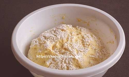 ①아이와 함께 밀가루를 반죽합니다.