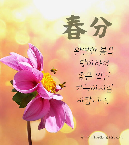 (춘분 인사말 문구) 오늘은 낮과 밤의 길이가 같다는 절기 '춘분(春分)'입니다. 완연한 봄을 맞이하여 좋은 일만 가득하시길 바랍니다.