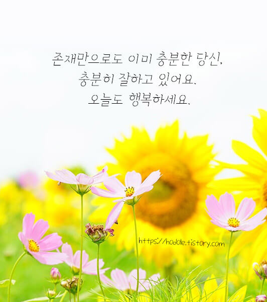 완벽하지 않아도 괜찮아요. 존재만으로도 이미 충분한 당신, 충분히 잘하고 있어요. 오늘도 행복하세요.