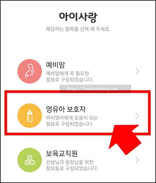 ② 앱 실행 후 '영유아 보호자'를 선택합니다.