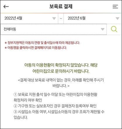 ☆잠깐! 만약 어린이집 보육료 결제를 깜빡했다면? 불이익이 있을까요? 정답은 "아니오" 등원일수 11일만 채우면 다음 달 결제한다고 해서 불이익은 없습니다. 다만 원에 지원금이 늦게 지급이 되겠지요?