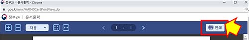 문서 출력 화면 상단의 인쇄 버튼을 눌러 출력하시면 됩니다.