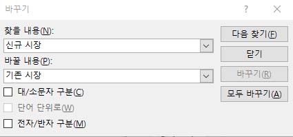 3. 하나 하나 찾으면서 바꾸려면 다음 찾기 >바꾸기를 하면 됩니다.