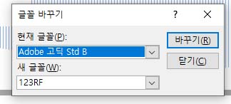 1. 상단의 홈 > 바꾸기 > 글꼴 바꾸기를 선택합니다.